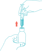 - با دقت پیستون را عقب بکشید تا دوز مورد نیاز شما که توسط پزشک تعیین شده است، وارد سرنگ شود. قسمت بالایی نشانگر رنگی باید روی خط میلیلیتر مورد نظر قرار گیرد. پس از پر شدن سرنگ، پیستون را با دست نگه دارید تا تکان نخورد.
